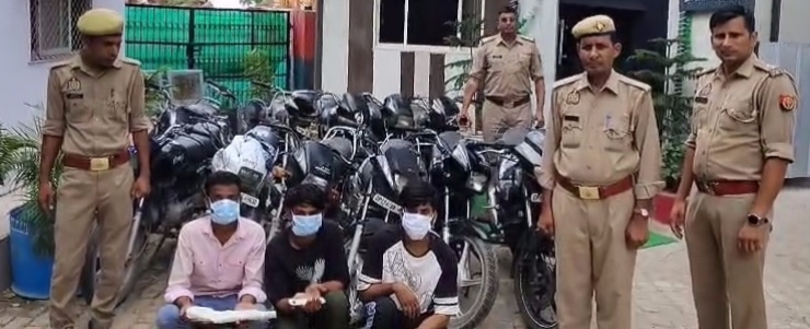 कासना पुलिस द्वारा मोटरसाइकिल चोरी करने वाले गिरोह का पर्दाफाश 3 अभियुक्त समेत 12 चोरी की बाइक बरामद