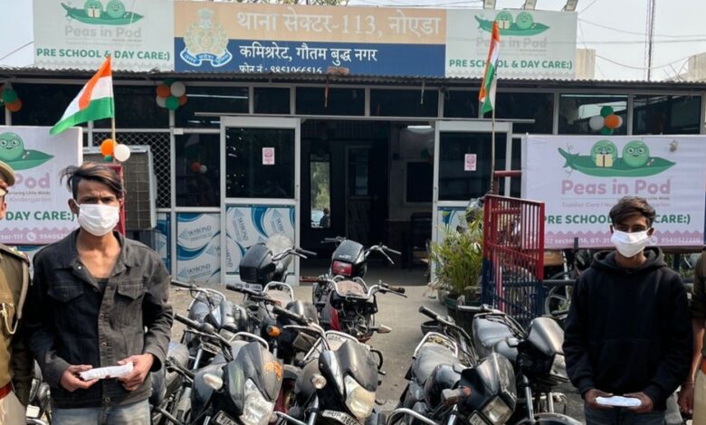 थाना सेक्टर-113 पुलिस द्वारा मोटरसाइकिल चोरी करने वाले 02 अभियुक्त गिरफ्तार