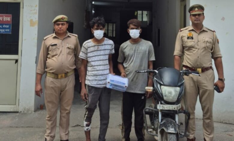 नोएडा ll थाना सेक्टर-24 क्षेत्र के अंतर्गत पी-ब्लाक, सेक्टर-11 की मार्केट के पीछे से एक महिला की चैन छीनने का प्रयास करते हुए दो अभियुक्त 1.संजय उर्फ बाबा पुत्र देवनारायण 2.आशु उर्फ डेढा पुत्र सुखबीर को जनता की मदद से पुलिस द्वारा गिरफ्तार किया गया है। अभियुक्तों के कब्जे से 07 मोबाइल फोन व चोरी की एक मोटरसाइकिल पैशन प्रो0 रजि0 नं0 डीएल 7 एसबीडब्लू 2065 बरामद हुई है।