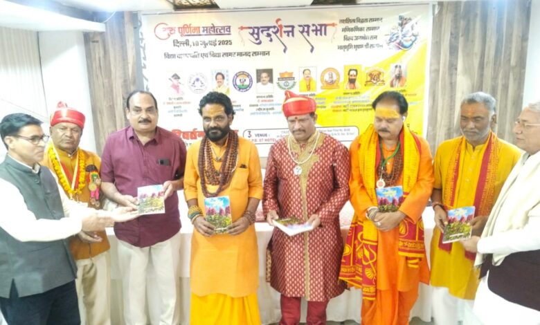 नोएडा llगुरू पूर्णिमा के पवित्र पावन अवसर पर सुदर्शन सभा मे परिवर्तन योगेश संस्थान, नई दिल्ली द्वारा आयोजित “गुरू पूर्णिमा महोत्सव एवं सुदर्शन सभा स्वागत- सम्मान समारोह में काशी हिन्दी विद्यापीठ, वाराणसी के आदरणीय कुलपति डाॅ संभाजी राजाराम बाविस्कर, राष्ट्रीय/अन्तर्राष्ट्रीय महासचिव, संयोजक एवं उपकुलपति: काशी हिन्दी विद्यापीठ एवं परिवर्तन योगेश  के संस्थापक डाॅ योगेश तरेहन प्रसिद्ध तबला वादक एवं ज्योतिषाचार्य,राष्ट्रपति द्वारा सम्मानित,गिनीज वर्ल्ड रिकार्ड होल्डर डाॅ.प्रशांत मनोहर गायकवाड-प्रसिद्ध गायकवाड घराना- महाराष्ट्र ,महर्षि भारद्वाज सनातन अखाड़ा, प्रयागराज के पीठाधीश्वर परम पूज्य श्री श्री 1008 डाॅ कृष्णानन्द जी महाराज , महामण्डलेश्ववर डाॅ. एन एन त्रिपाठी द्वारा, मातृभूमि भूषण श्री सम्मान प्रदान किया गया।