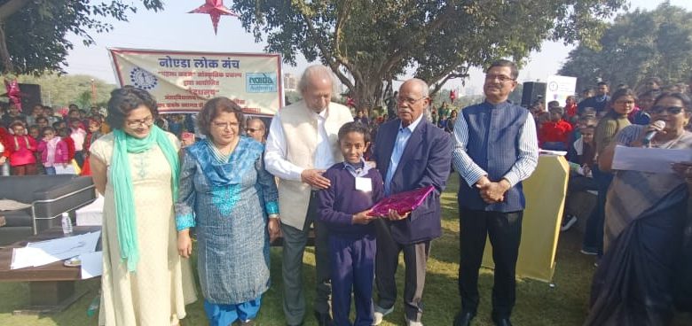गुलाबी ठंड और मखमली धूप के बीच नोएडा के सेक्टर 33 स्थित चिल्ड्रन पार्क में बच्चों का जमावड़ा सुबह से ही लगना शुरू हो गया था. अवसर था इंद्रधनुष अंतर विद्यालय कला प्रतियोगिता का आयोजन. तीन विभिन्न श्रेणियों में आयोजित इस प्रतियोगिता में बच्चों को अलग-अलग विषय दिए गए थे, जिन पर उन्हें चित्र बनाना था. प्रतियोगिता का उद्घाटन पूर्व सेक्रेट्री जनरल राज्य सभा योगेंद्रनारायण सिंह ने किया. इस अवसर पर पूर्व आईएएस और नोएडा अथॉरिटी की पूर्व सीईओ देवदत्त, नोएडा अथॉरिटी के एसीईओ मानवेंद्र सिंह और नोएडा अथॉरिटी के उप निदेशक उद्यान आनंद मोहन भी उपस्थित थे.